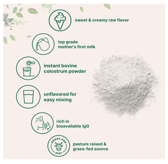 🥛 Pura leche materna de primera calidad: Calostro bovino natural de vacas alimentadas con pasto, con 227 porciones en una práctica bolsa de 8 oz.